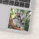 This adorable sticker captures the heartwarming bond between a mother and her baby koala. Perched on a sturdy tree branch, the baby koala cradles her mother gently, conveying a sense of love and tenderness between them both. The green leaves surrounding them add a touch of nature, making this sticker a perfect addition to your collection. Ideal for decorating notebooks, laptops, water bottles, and more, this sticker brings a touch of the wild and a lot of warmth to any surface.