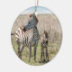 Ceramic decorative ornament with an image of a female zebra and her calf standing in the grassland.