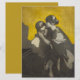 This design features a painting by the Scottish artist Norah Neilson Grey (1882–1931), who was a member of the Glasgow School of art. It is an abstract portrait of a mother and her child. The two figures are seen in silhouette, painted in various shades of grey, which provides a strong contrast with the bright yellow background behind them. The mother is kissing the cheek of her beloved child. The original art was painted by Norah Neilson Grey in 1920.