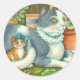 MOTHER CAT AND KITTEN, POTTED FLOWERS, BOWS & LACE CLASSIC ROUND STICKER