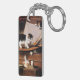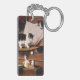 Keychain featuring Henriëtte Ronner-Knip’s oil painting The Mess on the Table (1883). A White and brown mother cat looks after her kittens playing with paint and other art supplies on a table. Two kitten hide in drawers. A perfect gift for cat lovers and Romanticism.