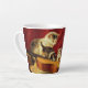 Latte Mug featuring Henriëtte Ronner-Knip’s oil painting Making Music (1900). A mother cat looks on as her two kittens play with a guitar while one other kitten claws up a red curtain, and another kitten hides behind books. A wonderful gift for cat lovers and Romanticism enthusiasts.
