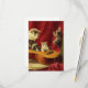 Card featuring Henriëtte Ronner-Knip’s oil painting Making Music (1900). A mother cat looks on as her two kittens play with a guitar while one other kitten claws up a red curtain, and another kitten hides behind books. A wonderful gift for cat lovers and Romanticism enthusiasts.