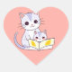 Cute drawing of a Mother Cat reading to her kitten, who is sitting on her lap. These heart-shaped stickers are 1-1/2" x 1-1/2" size with 20 stickers per sheet. Can be ordered with a glossy (shiny) finish or a flat matte (not as shiny) finish. They are printed on white, acid-free paper, perfect for scrapbooking. Scratch-resistant front with easy peel-and-stick back. Ideal to use on envelopes also!