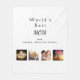 Make your own unique family photo collage. Use four, 4 of your favourite photos of your mother, her kids, family, friends or pet! With the text: World's Best Mum. Personalise and add your names.