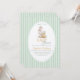 This charming baby shower invitation features a soft vintage watercolor illustration of a Mother Goose and Gosling, creating a warm and tender story of love and care. The delicate artwork is framed in an elegant oval shape and placed on a classic pastel green striped background, inspired by timeless nursery and storybook designs.