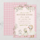 This charming design features soft pink gingham, delicate floral accents, and sweet goose illustrations in a vintage storybook style—perfect for a cozy and feminine baby shower theme.