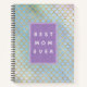 Ocean blue and nautical theme. Ice blue and faux gold glitter mermaid scale pattern and a purple frame. Text: Best Mum Ever. White text. A college ruled journal for the world' best mother to take notes or use as a diary. Perfect for birthdays, Mother's Day or Christmas.