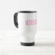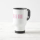 This mother of Bride Travel Mug is shown in stainless steel in White with a Pink colour text.