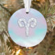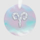 An Aries zodiac symbol in mother of pearl style background. A modern fresh soft design for a great custom birthday gift idea.