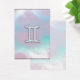 A mother of pearl like Gemini zodiac symbol on soft pink purple fuchsia background. A modern urban girly style design for a great custom birthday gift idea for her.