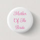 Button Pin casual fun fashion statement accessory printed with White Colour background and Mother Of The Bride in Hot Pink Colour text typography lettering design by TheFabricSeal print on demand shop at Zazzle.com #ZazzleMade https://www.zazzle.com/store/thefabricseal TheFabricSeal©️Original.
