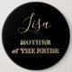 Mother of The Bride Black and Gold Glitter Typography Elegant Button, you can add your name