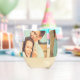 Create a perfect keepsake gift for the mother of the bride. This stemless wineglass is ready to be personalised with three of your favourite photos and features a white tag with the message "Mother of the Bride" written on it in black script lettering.