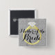 Mother of the bride lapel pin button is a useful tool for helping new family members recognise who's in the wedding party. Elegant grey damask background with gold solitaire diamond ring graphic and fancy script text.