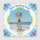 Pretty Circular Mother’s Day New Mum Mummy Baby Girl Boy Photo Gift Magnet. In spring and summer colours of pink, turquoise blue, purple, cream, green, and orange. A springtime and summertime round border surrounds the picture in the middle. Replace the photo with a picture of your own beautiful new baby boy or girl, or child with their mum. The text at the top says “Best Mummy Ever!” in blue. At the bottom is the year, in pale blue. Personalise this by changing the year. Give as a present for a new mum on Mother’s Day. Mama, mum, mam, mammy, mummy, and mother will love putting this gift magnet on their fridge to celebrate the birth of their new baby. In lovely, bright and light colours.