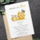 Mother to bee baby shower invitation , featuring a bee honeycombe and a pot of honey with modern clear text , a modern minimalistic design with beautiful detail to the graphics , painted in watercolor paint.