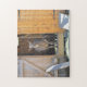 This puzzle features an image of a mother goat with her baby standing in the doorway of their home in Killingworth, Connecticut.