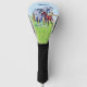 This custom golf club cover for your drivers has a grey spotted mother horse with her brown baby colt standing by a wooden fence in a grassy field. Customise your name with the template.