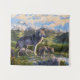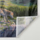 A mother wolf stands on a cliff overlooking a valley below with her two young wolf pups. This scenic country of mountains, rivers, forests, and meadows is the territory belonging to her wolf pack. The original painting is titled "Passing It On" because the mother wolf has brought her pups to this ridge to show them the vast and beautiful wilderness they will inherit when they grow up and take over as leaders of the pack.