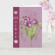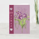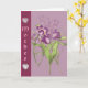 A mauve card with tulips and a couple of hearts,on a nice border on the side