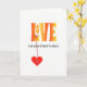 This bright modern design has LOVE in orange-yellow coloured capital letters with a pattern of white flowers, and there is a reddish-orange heart hanging from the L. You can personalise this card by editing the text on the heart, and inside edit the message too. Or if you prefer, you can just use the suggested "To the best mother in the world". Send LOVE on Mother's day.