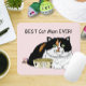 A cute calico cat with their food bowl beside them declaring to everyone they have the best cat Mum EVER!. Happy Mother's Day form the cat