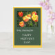 A bright and colourful Mother's Day Card for a stepdaughter, with a clump of red, orange and yellow tulips, from a photograph by Judy Adamson. The inside is left blank for your own message.