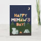 Mother's Day's Day Card for MeMaw. You call your grandmother MeMaw, not Grandma. So get your MeMaw a Mother's Day card made especially for her! This cute outdoorsy card is perfect for any MeMaw who loves camping, nature, the outdoors, and looking up at the stars in the night sky with her grandkids. The Mother's Day card features a grandmother bear and a grandchild bear sitting outdoors by a campfire and tent in the wilderness looking up at the stars in the sky and the mountains. The cute Scandinavian-style text reads: Happy MeMaw's Day!