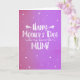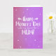 Mother's Day Card for Mum. If you call your mother Mum instead of Mum, this Mother's Day' card is perfect for her. Your mum will love this Mother's Day card's fun pink, purple, and white bubble design which says "Happy Mother's Day to my favourite Mum!"