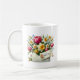 This classic white coffee mug is shown with a lovely Mother's Day floral bouquet print.
