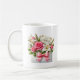This classic white coffee mug is shown with a lovely Mother's Day floral bouquet print.