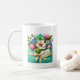 This classic white coffee mug is shown with a lovely Mother's Day floral bouquet print.