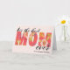 Contemporary photo greeting, features a soft pink polka dots background with the word MOM ornamentated with a floral motif.