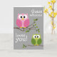 A funny, lighthearted design for your mom! Cartoon owl in bright colors with leaves and branches with a Happy Mother's Day text that you can personalize.
