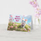 For any mom, a cute Happy Mother's Day card with a darling white kitten in a whimsical scene of flowers and hearts and customizable text too.