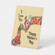 Sweet picture of a mother giraffe and her baby, is featured on this pedestal sign for Mother's Day. With message, "I Love You, Happy Mother's Day", in black lettering. A special sign to give Mum on her day that will last longer then just a card!