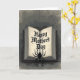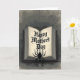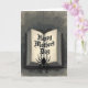 This greeting card shows an open, aged-looking book centered on a muted, textured gray background, with a dark cover and warm, sepia pages that glow softly from within. Across the cream-colored spread, the message “Happy Mother’s Day” appears in ornate black lettering, set prominently in the middle like a secret note tucked into a beloved keepsake ❤️. Near the lower portion of the open pages, a large multi-legged arachnid sits in deep shadow, its stillness adding a daring contrast to the gentle greeting. Above the book, a delicate web hangs from a thin thread, and its fine lines feel like a quiet connection stretching between the words and the creature. The limited colors—charcoal, ash gray, and antique white—give the scene an old-library mood, where affection and mystery share the same space 🌼. Light seems to rise from the pages, catching the rough paper texture and making the dark shapes look even more defined. The greeting text is centered on the open pages in black, while the surrounding gray background stays subdued to keep your eyes on the book. A thin strand descends from the top edge to the web, and the spider’s silhouette rests along the lower right area of the open spread.