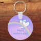 Pretty keychain with my design of two white and blue hearts over a rainbow in a purple sky. Text says "Happy Mother's Day!"