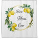 This Mother's Day shower curtain has a gold wreath decorated with green foliage and the ever trendy bright yellow lemons. The sentiment on it will be well appreciated by any mum.