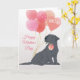 Mother's Day Love from your Black Labrador Retriever Dog Card celebrates the unconditional love of your dog for his dog mom. This happy Black Labrador Retriever Dog is bringing you a colorful bunch of balloons with a special heart balloon and a pretty pink flower in his mouth. This hand painted water color design is set on a soft gray gradient background to pop the white on many of the dogs in this collection. The inside of the card has the "mom" balloon on the left side and a message, flower and a dog's name.All of the text is editable, by using the edit button. Change the message if you like and please remember to change the dog's name on the inside. This card is also a great idea for your friends who have four-legged children. You will find over 30 breeds on these cards in our HAPPY MOTHERS DAY WISHES FROM YOUR DOG COLLECTION.