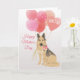 Mother's Day Love from your German Shepherd Dog Card celebrates the unconditional love of your dog for his dog mom. This happy German Shepherd Dog is bringing you a colorful bunch of balloons with a special heart balloon and a pretty pink flower in his mouth. This hand painted water color design is set on a soft gray gradient background to pop the white on many of the dogs in this collection. The inside of the card has the "mom" balloon on the left side and a message, flower and a dog's name.All of the text is editable, by using the edit button. Change the message if you like and please remember to change the dog's name on the inside. This card is also a great idea for your friends who have four-legged children. You will find over 30 breeds on these cards in our HAPPY MOTHERS DAY WISHES FROM YOUR DOG COLLECTION.