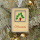 This awesome Christmas ornament features a digital art image of a series of leaves from a houseplant called a Monstera, also known as the Swiss Cheese Plant. The leaves are dark green and lobed and some have holes in them. The plant pot is red and contains some brown soil. There is custom text so you can personalise this design with a name or message.
