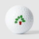 This awesome golf ball features a digital art image of a series of leaves from a houseplant called a Monstera, also known as the Swiss Cheese Plant. The leaves are dark green and lobed and some have holes in them. The plant pot is red and contains some brown soil.