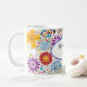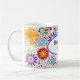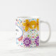 This ceramic coffee mug is shown with a lovely bright coloured floral print design with a message for Mum..