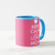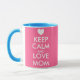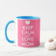 Mother's Day Mug | Keep Calm and love mum. Cute Keep calm and carry on parody cup with little heart. Pink and blue colours.