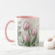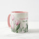 Give your MOM this beautiful mug for Mother's Day, or even her birthday with a gorgeous green and pink spring Tulips floral that covers the whole mug.