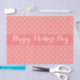 Happy mothers day coral polka-dot tissue paper, or personalise the text and colour for any special occasion. Text and centre stripe are also removable.