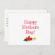 Green pattern with leaves and watercolor red flowers Postcard. Modern green typography. Perfect wishes for First Mum & Mother-To-Be.