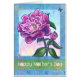 Happy Mother's Day Pink Peony Art Mother's Day Card brought to you by Imagine That! Design features our original painting of a beautiful pink peony on a sunrise coloured sky with textured blue and green borders and butterflies with the words Happy Mother's Day. Our pretty floral painting is a perfect gift for her on Mother's Day. Show your mum, mum, mother, grandma, oma, gramma, granny, and wife on this special day how much you love them. You can never go wrong with a gift of flowers.